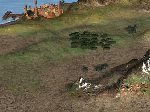 The first one is just a simple texture file that is drawn on the strategic map. The blue one is a normal map for that texture. All textures that have a normal map have the letter NM at the end of the file name. As you can see this particular normal map has just one color so it's basically not affecting the texture. For those who aren't familiar with normal maps, here's a short explanation: Normal maps are used for creating the illusion of height differences in the 3D-model. If you are familiar with 3D-programmes you compare normal maps to bump maps. Both are used to create bumpiness or height differences in the 3D-model. They work differently, but I'm not going to go any deeper into the technical stuff here.